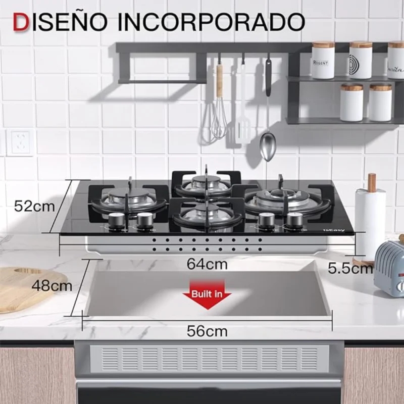 IsEasy 4 Fuegos Gas Natural/Propano Placa de Gas