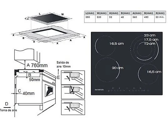 Infiniton VITRO-A4F 4 zonas 59 cm Placa Vitrocerámica
