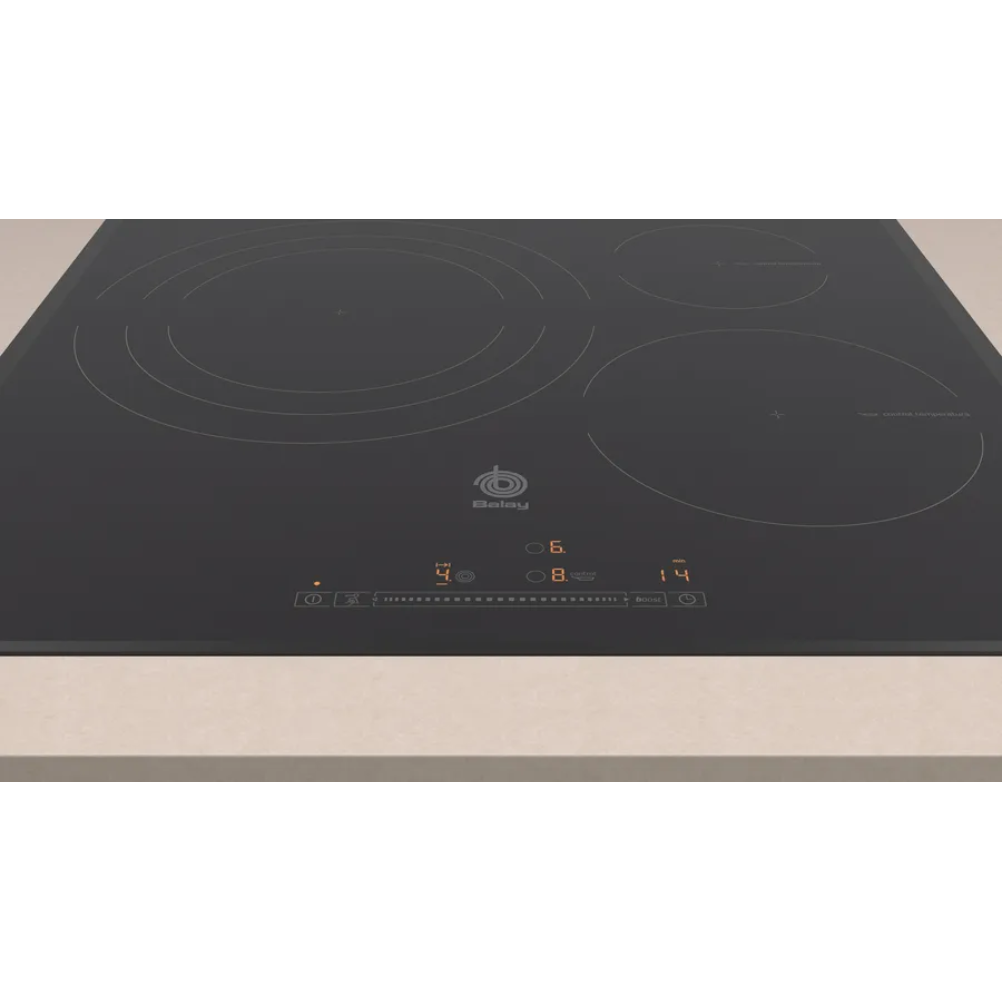 La placa de inducción Balay 3EB967LU cuenta con tres zonas de cocción mediante tecnología de inducción. Posee un control táctil que permite ajustar la temperatura con precisión. Se integra un temporizador para cada zona, facilitando la programación de los tiempos de cocción. Esta placa dispone de una función de detección de recipientes, que activa la zona solo cuando se coloca un recipiente adecuado. La instalación puede realizarse en superficies de trabajo de diferentes tamaños, adaptándose a diversas configuraciones de cocina. La placa tiene un sistema de seguridad que incluye un bloqueo para niños y un sistema de apagado automático, que se activa cuando no hay recipientes en las zonas de cocción. Su diseño permite una limpieza sencilla, dado que la superficie de la placa no se calienta en las áreas alrededor de las zonas de cocción. Además, el consumo energético está regulado para optimizar el uso durante su funcionamiento.