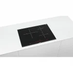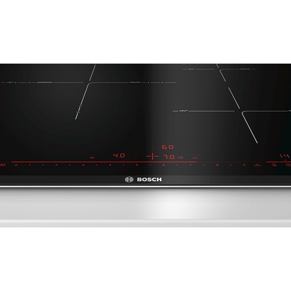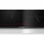 La placa de inducción Bosch PID775DC1E ofrece un diseño con cinco zonas de cocción, permitiendo la preparación de múltiples platos simultáneamente. Su superficie de vidrio cerámico facilita la limpieza. Incorpora un sistema TouchSelect que permite seleccionar fácilmente la zona de cocción y ajustar la potencia. El dispositivo cuenta con una función de temporizador que se puede programar para cada zona, facilitando la gestión del tiempo de cocción. También incluye un indicador de calor residual que informa sobre la temperatura de la superficie tras su uso. La potencia total alcanzable es de 7.400 W, con posibilidad de combinar zonas mediante la función PowerBoost. Es compatible con utensilios de cocina aptos para inducción. Cuenta con una función de protección contra sobrecalentamiento y un bloqueo de seguridad para evitar activaciones accidentales. La instalación requiere un área adecuada y conexión eléctrica conforme a las especificaciones del fabricante. Esta placa está diseñada para ser utilizada con sistemas de cocina de inducción específicos.