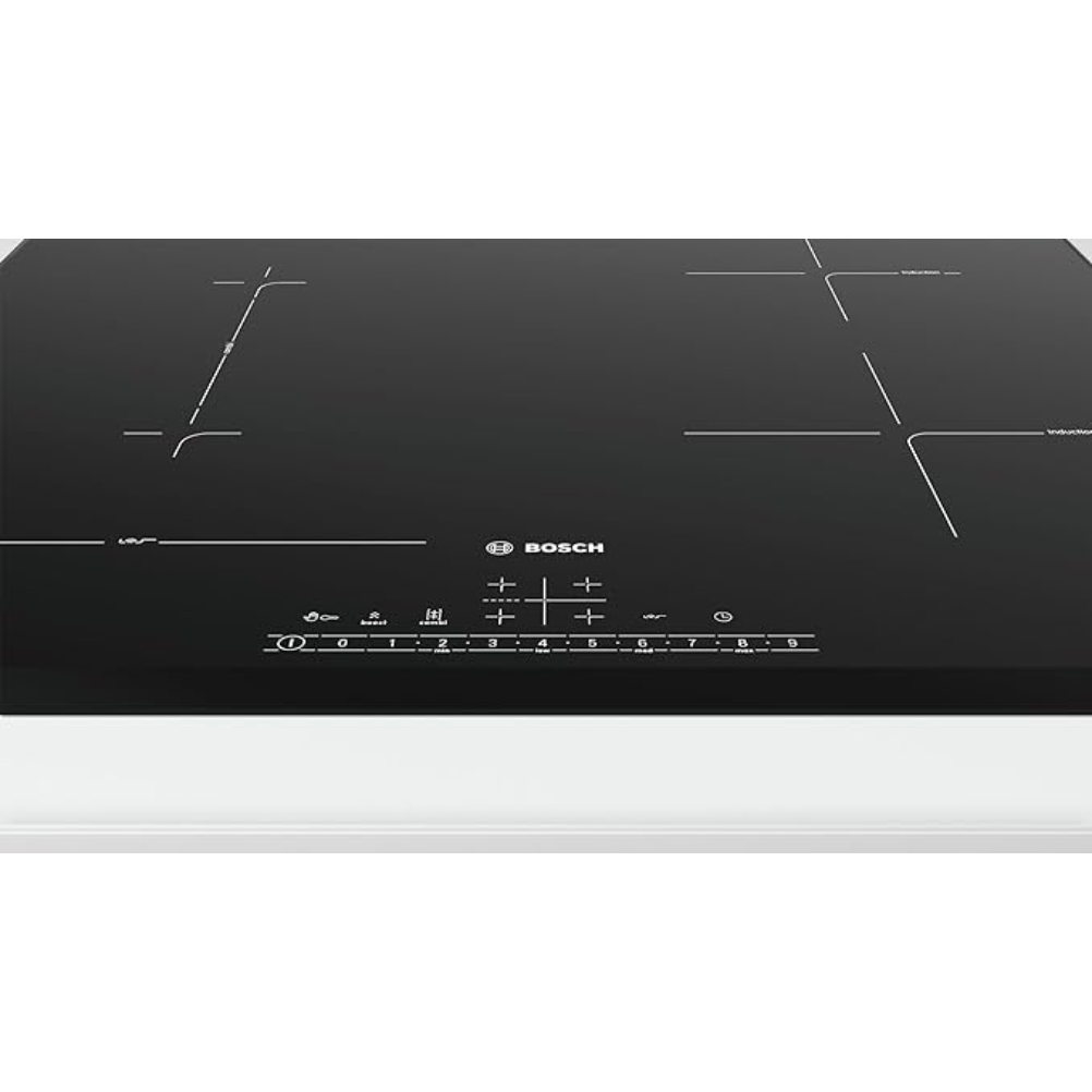 La placa de inducción Bosch PVS651FC5E cuenta con una superficie de cocción de vidrio cerámico. Tiene cuatro zonas de inducción que permiten calentar utensilios de cocina compatibles. Cada zona cuenta con un control táctil que facilita la selección de la potencia deseada. La función de temporizador permite programar el tiempo de cocción para cada zona, y la función PowerBoost ofrece un aumento de potencia en las zonas seleccionadas. Esta placa es compatible con utensilios que tengan un fondo ferroso, como cacerolas y sartenes específicas. Incorpora un sistema de seguridad que incluye un bloqueo infantil y un indicador de calor residual que señaliza cuando las zonas están calientes. La instalación requiere conexión eléctrica adecuada según las especificaciones del fabricante.