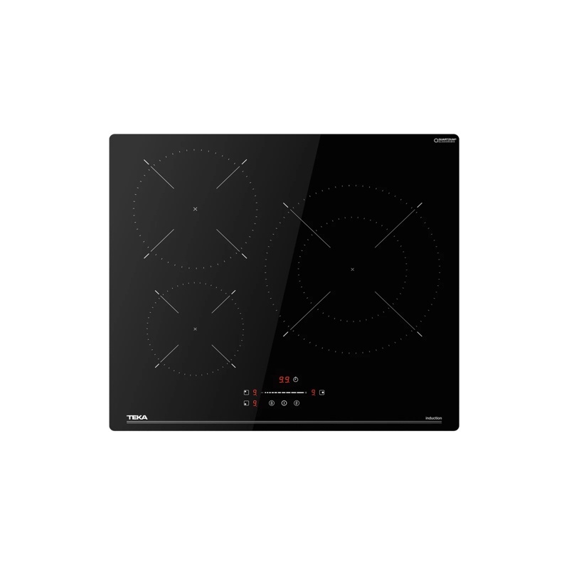 Placa de inducción Teka IBC 63110 SSM BK con 3 zonas de cocción. Zona principal de 290/180 mm, segunda zona de 210 mm y tercera zona de 160 mm. Potencia máxima nominal de 7400 W. Control mediante sistema Touch Control MonoSlider. Superficie de vidrio cerámico con acabado redondeado. Incluye temporizador de cocción y función Power Plus. Dispone de regulador de potencia. Incorpora desconexión de seguridad con bloqueo automático, bloqueo para niños e indicador de calor residual como medidas de seguridad. Configuración de tres zonas de cocción independientes. Datos técnicos indicados con dimensiones de zonas expresadas en milímetros y potencia en vatios. Sistema de control especificado como MonoSlider táctil. Función Power Plus indicada como característica técnica del dispositivo. Configuración diseñada para instalación en encimera. Parámetros técnicos definidos según especificaciones del fabricante con valores de potencia, número de zonas y sistema de control.