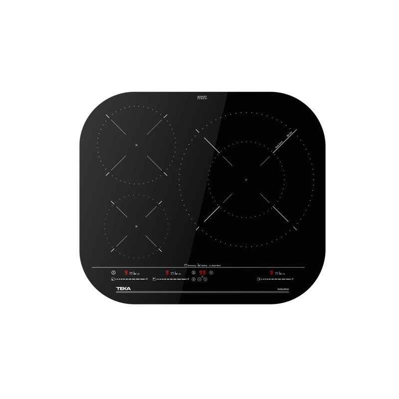 Placa de inducción Teka IKC 63320 MSP BK con 3 zonas de cocción. Zona paellera de 320 mm con doble circuito de 180/320 mm, además de zonas de 150 mm y 185 mm. Potencia nominal máxima de 7200 W. Control mediante Touch Control Multislider con sensores acústicos y bloqueo de seguridad independiente por zona. Incluye función Stop & Go, programador de tiempo de cocción hasta 99 minutos con avisador acústico y modo silencio. Dispone de funciones directas de fuego lento, derretir y mantenimiento de calor. Incorpora función Power Plus con rangos de potencia de 1600 W, 2100 W y 3600 W según zona. Superficie de vidrio cerámico con acabado de cristal redondeado. Dimensiones de 53 mm de altura, 590 mm de anchura y 510 mm de profundidad. Peso de 9,14 kg según especificaciones del fabricante. Configuración de tres zonas de cocción independientes. Datos técnicos indicados con dimensiones expresadas en milímetros y potencia en vatios. Sistema de control especificado como Multislider táctil. Configuración diseñada para instalación en encimera. Parámetros técnicos definidos según especificaciones del fabricante con valores de dimensiones, número de zonas, potencia y funciones.